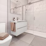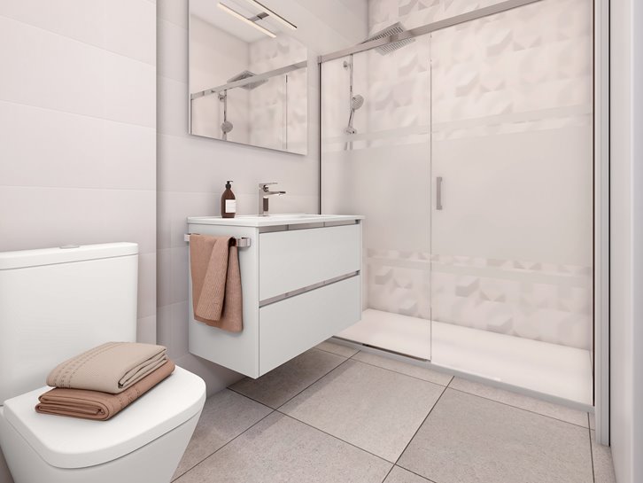 • Pokrycie sufitów laminowaną płytą gipsowo-kartonową i zdejmowanymi sufitami podwieszanymi w łazienkach. • Łazienki wyłożone najwyższej jakości kamionką.