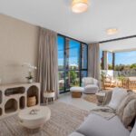 Apartamenty w stylu nowoczesnym, 3-4 pokojowe, zaprojektowane z otwartymi przestrzeniami i dużymi oknami, kuchnią otwartą na salon, sypialnią główną z garderobą. Dwie łazienki.